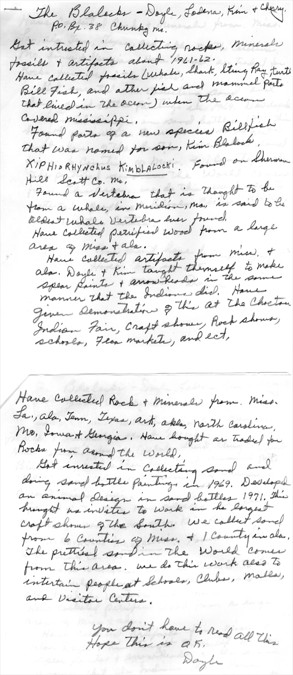 The entire Blalock family got a kick out of going to the Mississippi Gem and Mineral Show every year. Here is Doyle at the 1966 show.