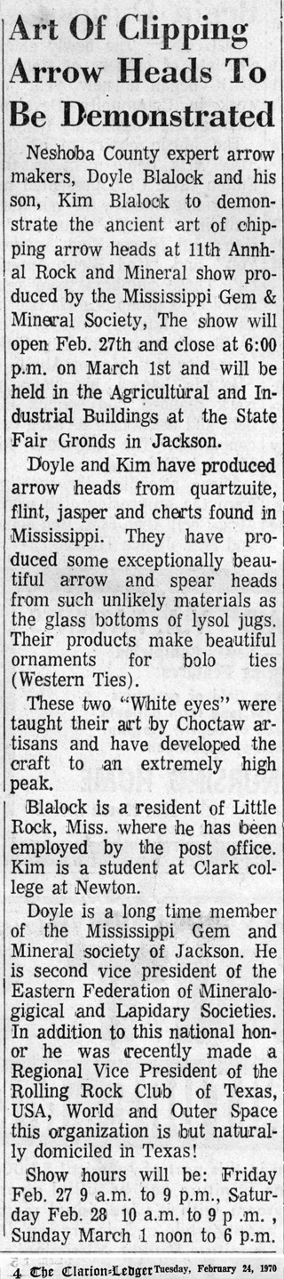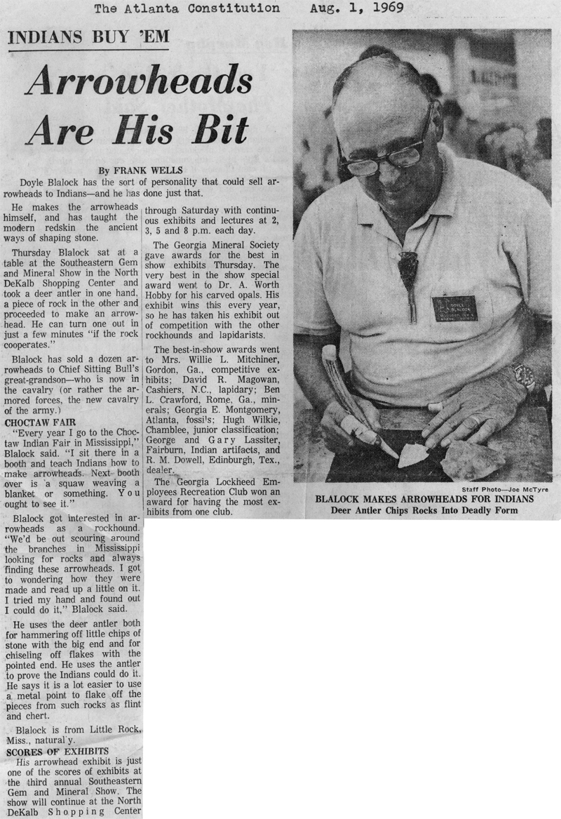 Here's an article from The Atlanta Constitution newspaper dated 8/1/1969 about Doyle and his arrowhead making skill.