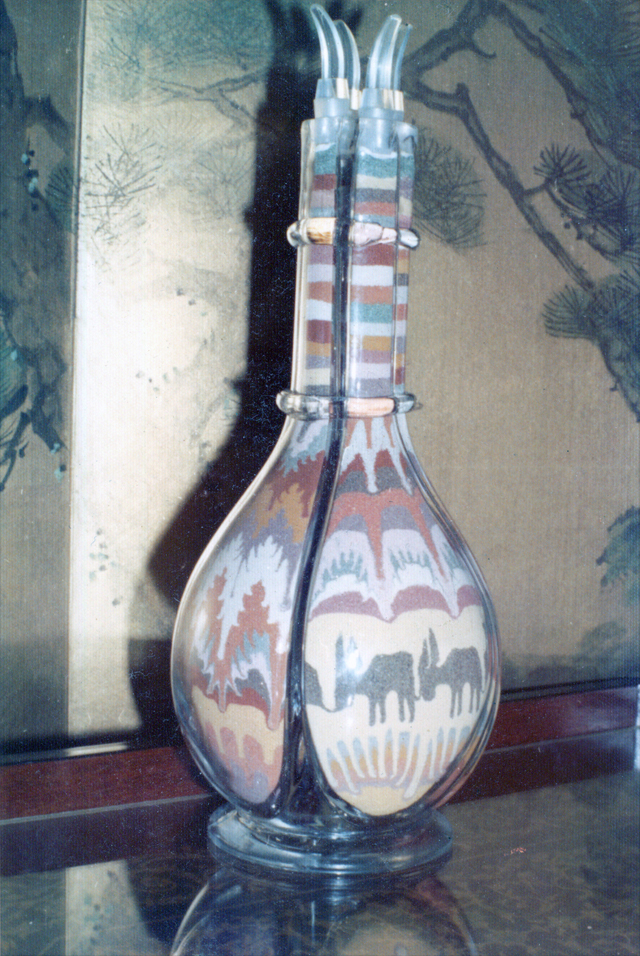 By 1972, Doyle is able to create this amazing piece of art! That is a 4 compartment oil flask, with the opening of each compartment at the top being smaller in diameter than a number two pencil!