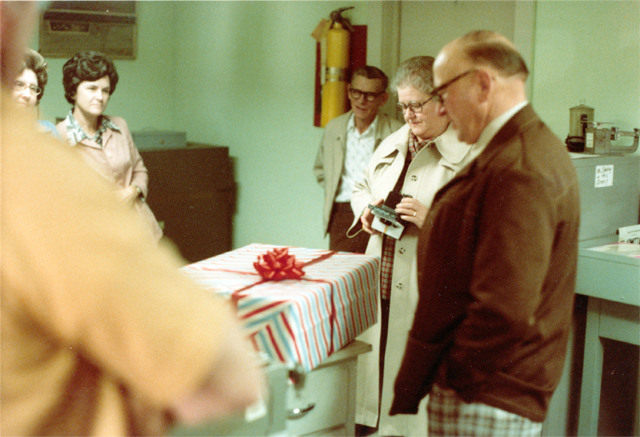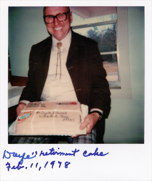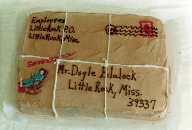 On February 11, 1978, a retirement party was held for Doyle at the post office. He received a large Coleman camp type grill in addition to the cake.