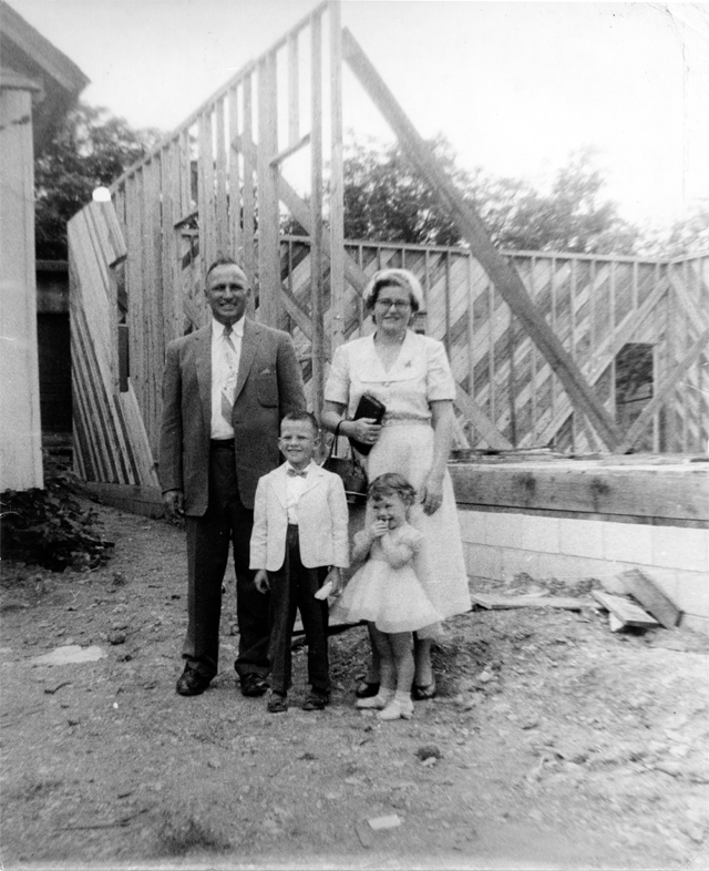 Here are Doyle, Lodena, Kim, and Cherry in front of a church (or a house?) under construction.
