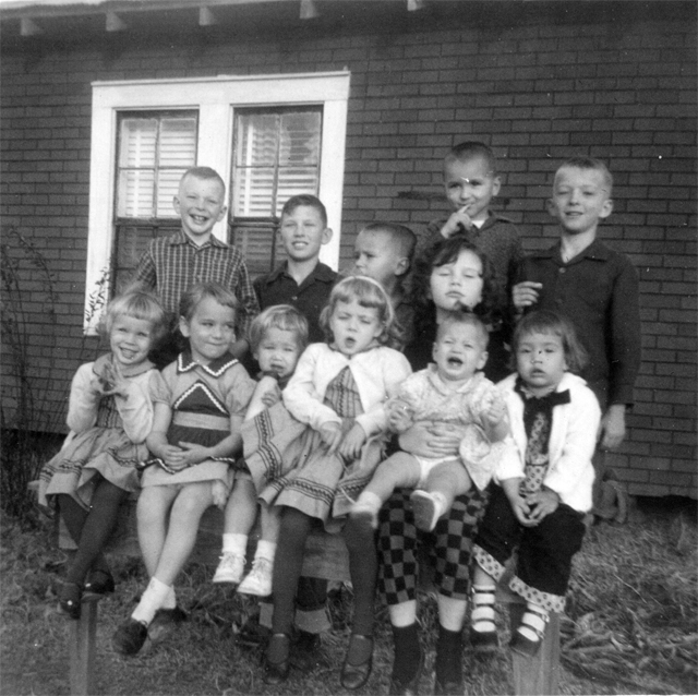 In the picture are Hershel, Harold, Doyle, Sylvia, Jesse, Jesse Jr., Flora (kneeling), holding Terry, Cherry, Kim, and Larry.