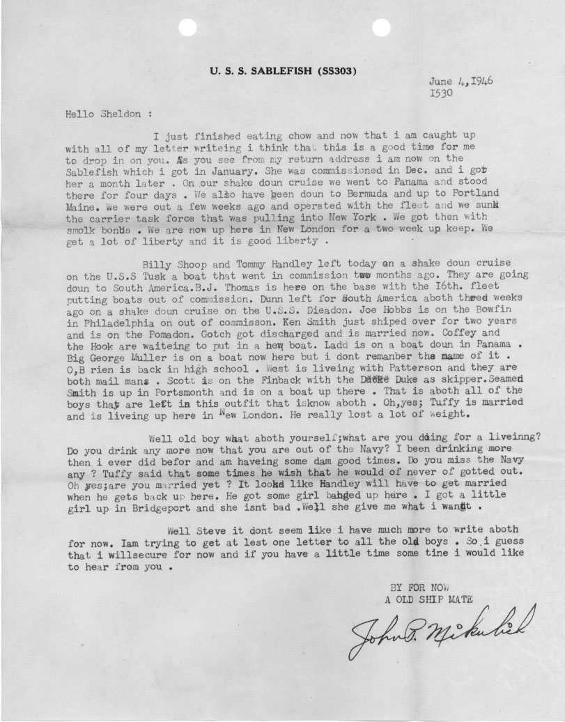 The last mention of WWII days for over 45 years (that I was able to find) was a letter sent to Doyle from an old shipmate, John Mikulich. I guess WWII days were to be forgotten, or attempted to be forgotten. Around 1992, all that will change, though.
