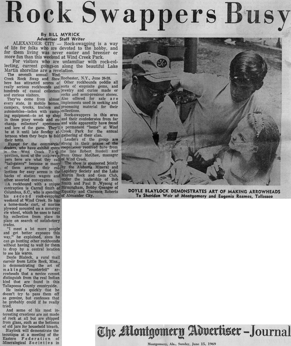 He demonstrated arrowhead making at the Wind Creek Rock Swap and Show in Alexander City, Alabama in June of 1969.
