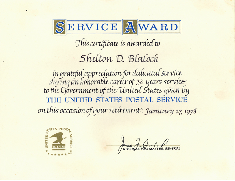 On January 27, 1978, Doyle retires from the U.S. Postal Service after 32 years. A big accomplishment.