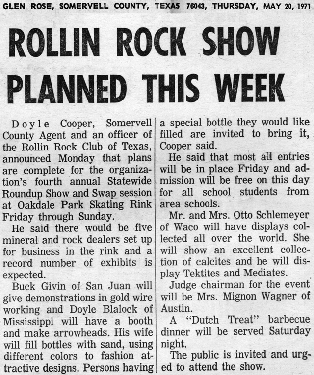 In late May of 1971, Doyle and Lodena are over in Texas taking part in the Rollin Rock Club Show.