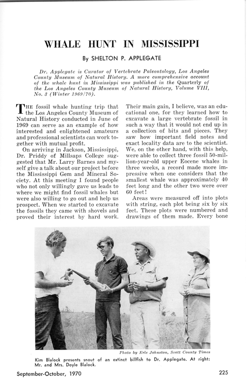 The article above is called "Whale Hunt in Mississippi" by Shelton P. Applegate.