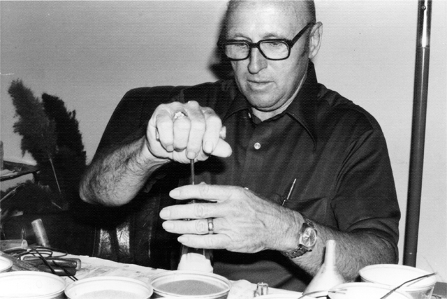 In February of 1971, Doyle is making arrowheads at the Gem and Mineral Show in Jackson, MS.
