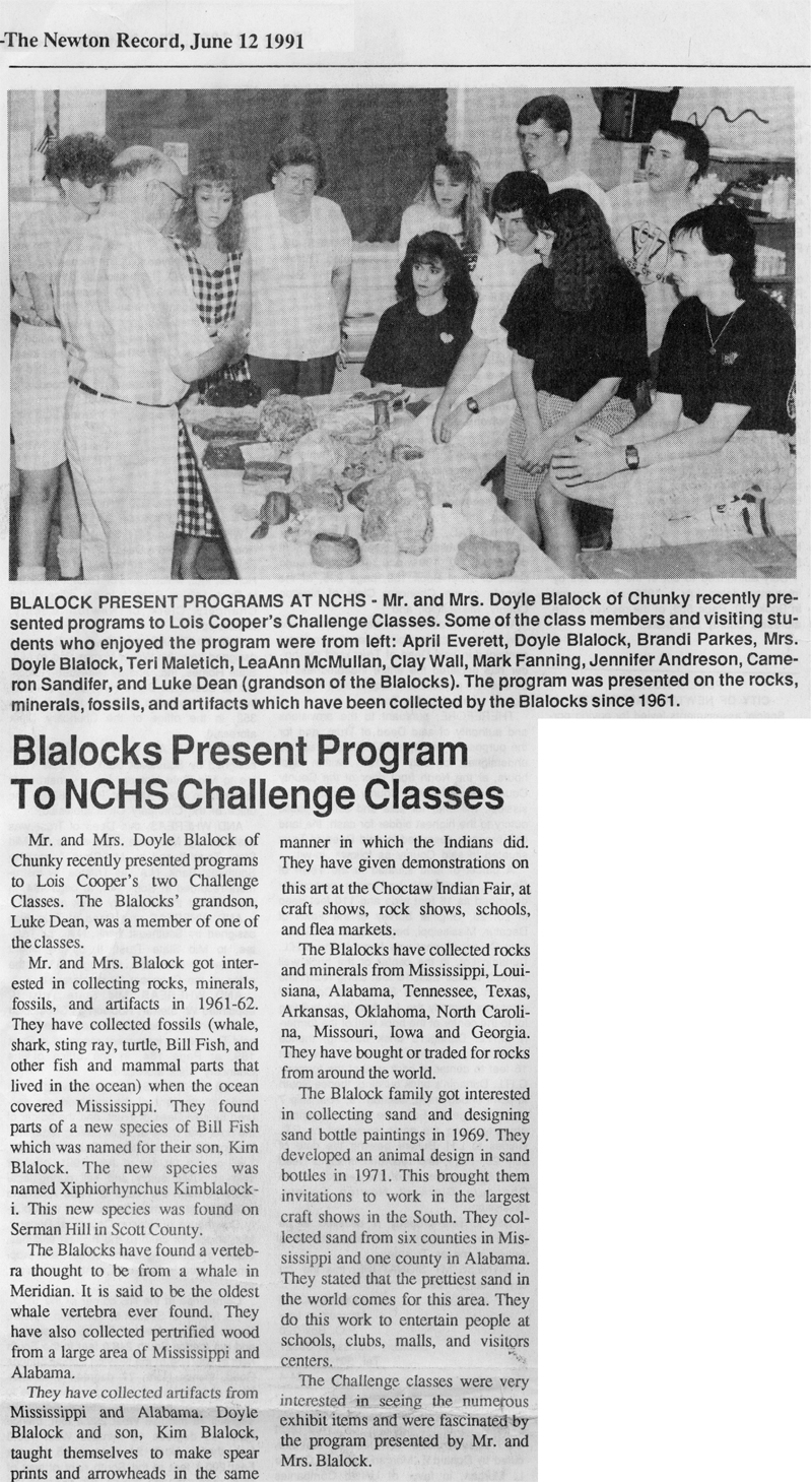 Doyle and Lodena visited the Newton County High School Challenge classes in June of 1991. You can see my brother Luke over on the right.
