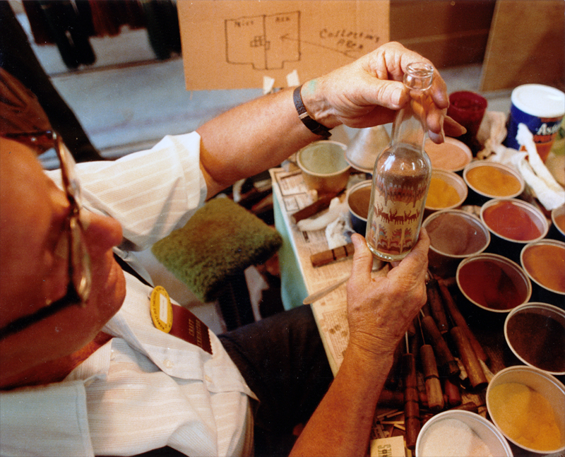 Time moved along. Around 1995, Papaw took me out on their porch and handed me a small sand bottle made from a Cracker Barrel syrup bottle. He told me that he had probably made his last sand bottles, as he could no longer see well enough to work on them. He said "Having diabetes is bad, having glaucoma is bad, having cancer is bad, but going blind is BAD!!"