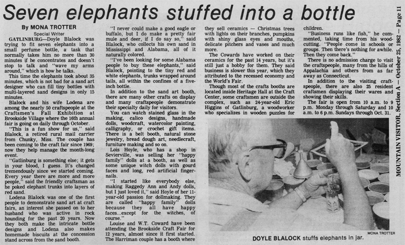 Pictured above is Doyle working at a craft show, likely in Gatlinburg, TN.