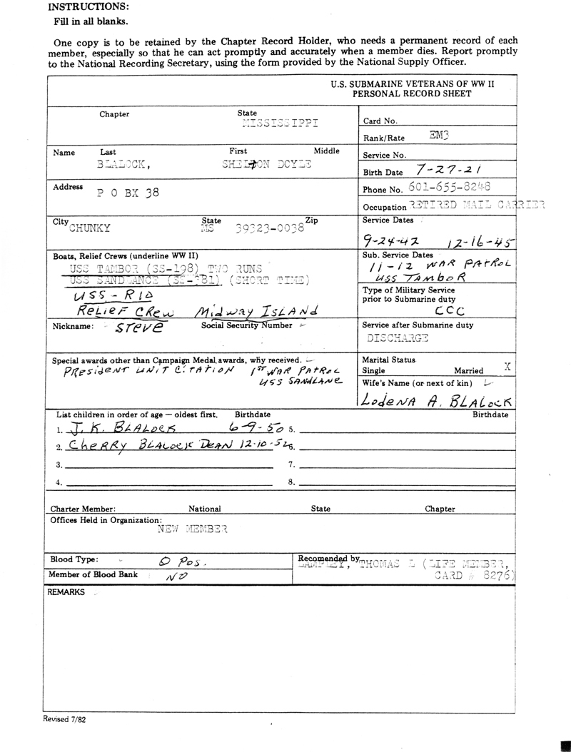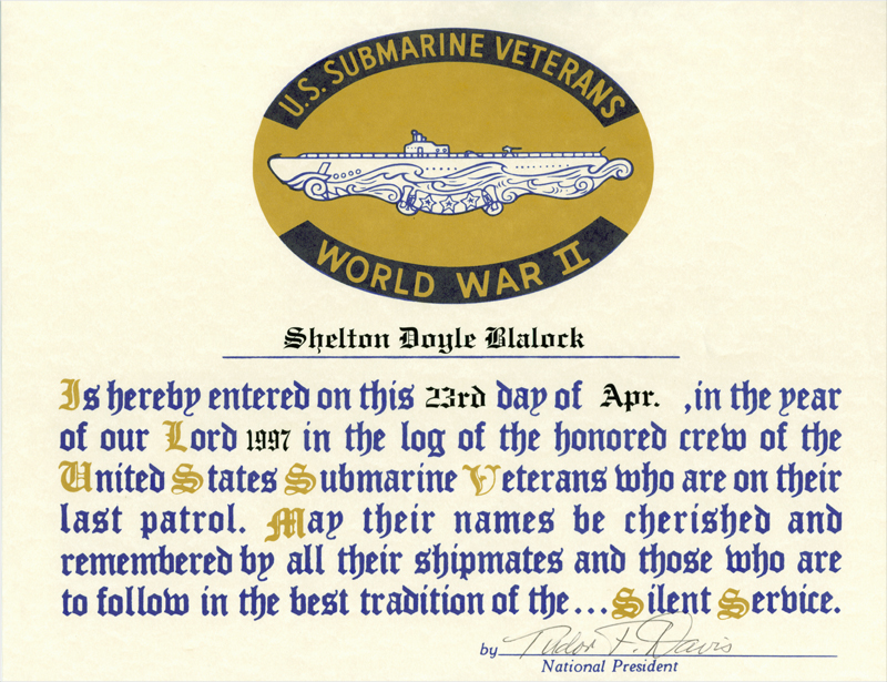 He sent Doyle an application to join the U.S. Submarine Veterans Of WWII organization. I believe he was part of the USSVWWII Magnolia Rebel Chapter.